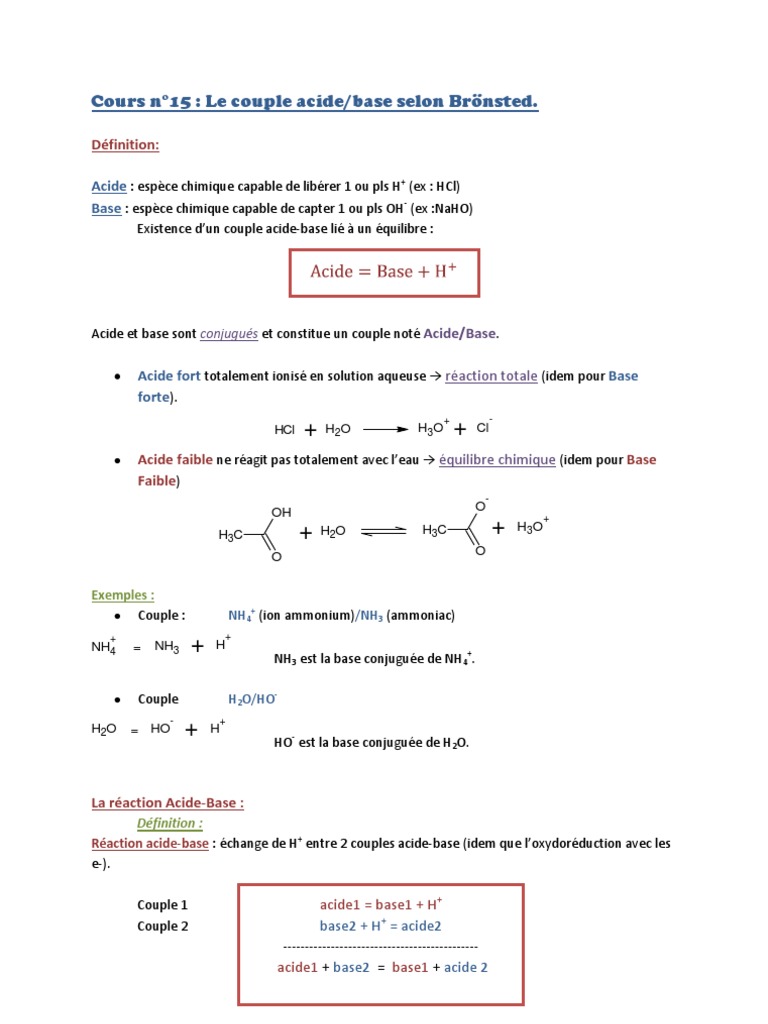 L'interêt de ce forum est d'expliquer à la personne comment elle peut résoudre son exercice et donc d'expliquer le raisonnement à adopter. Les deux forment un couple acide/base soit donneur de h+/accepteur de h+. Cette leçon comporte six paragraphes. Data at nist subscription sites: