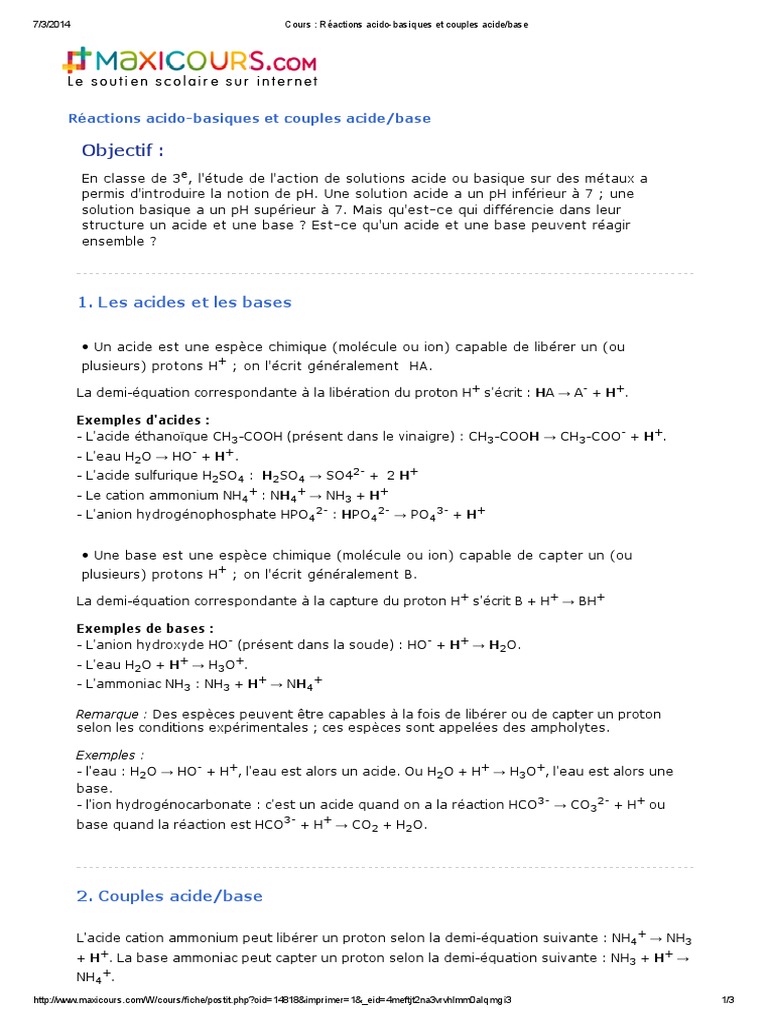 Vb = 4 ml réactifs produits equation: * c'est un acide : Comparaison des couples acide / base. Ion méthanoate hcoo citer les ampholytes.